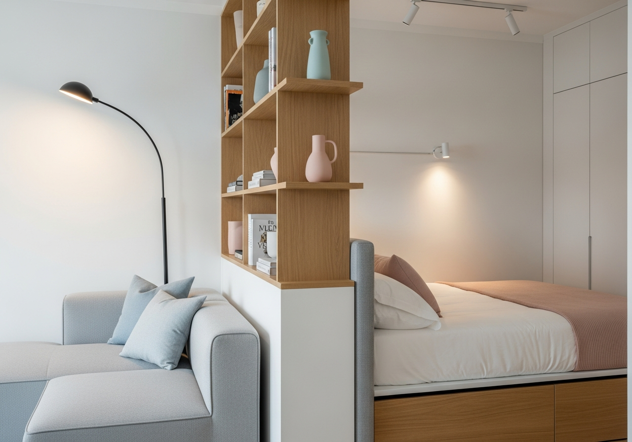Fizyczne podziały: jak oddzielić strefę dzienną od sypialni w kawalerce 25m²?